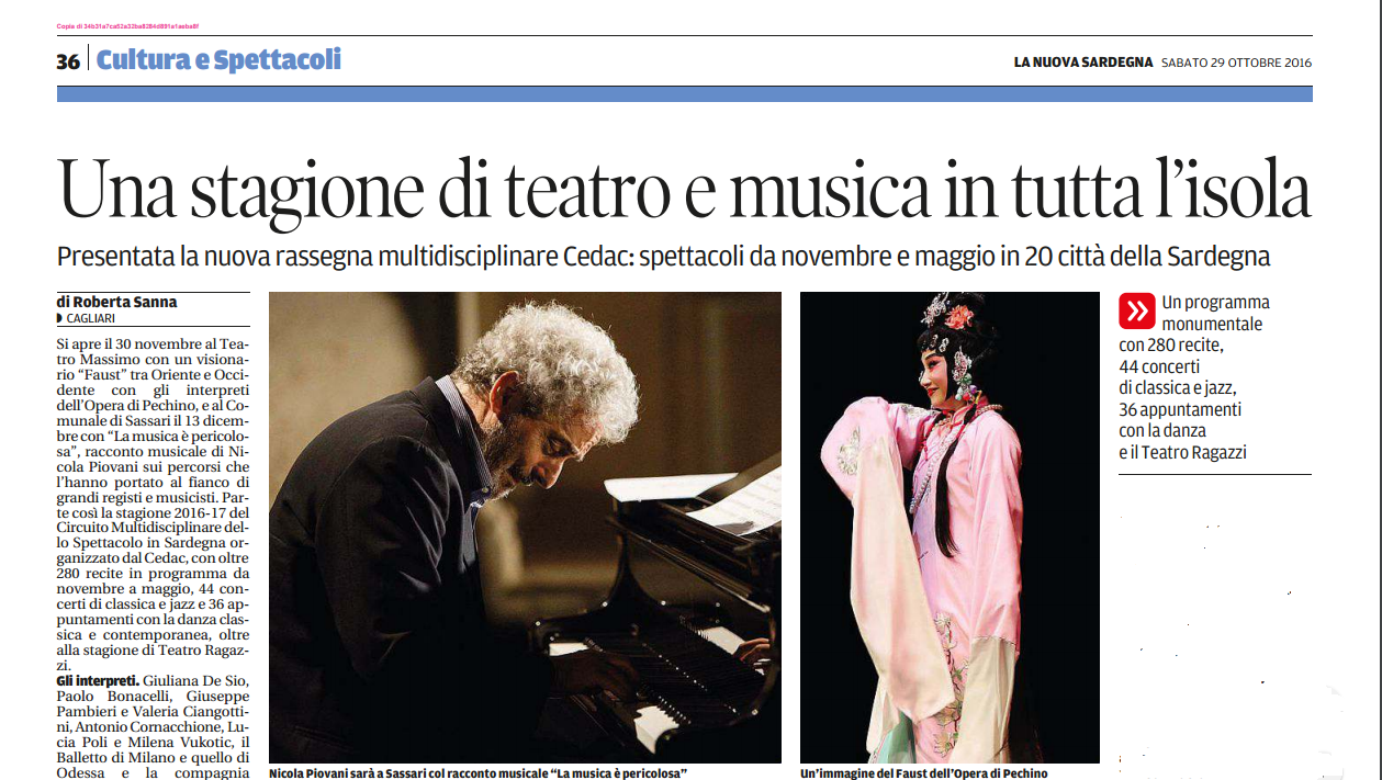 CeDAC – Circuito Multidisciplinare dello Spettacolo in Sardegna – Stagione 2016-17